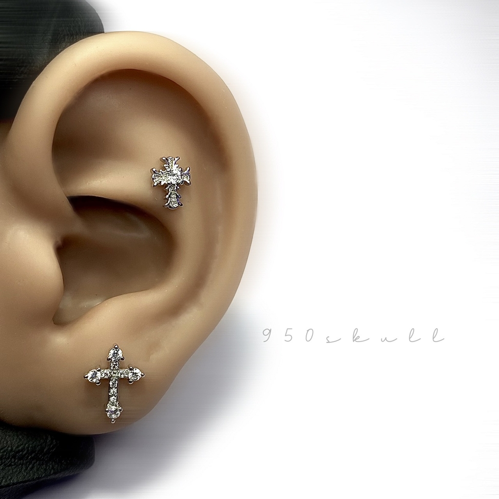 Chất liệu : Thân khuyên Stainless Steel / Mặt khuyên chất liệu hợp kim đính đá CZ